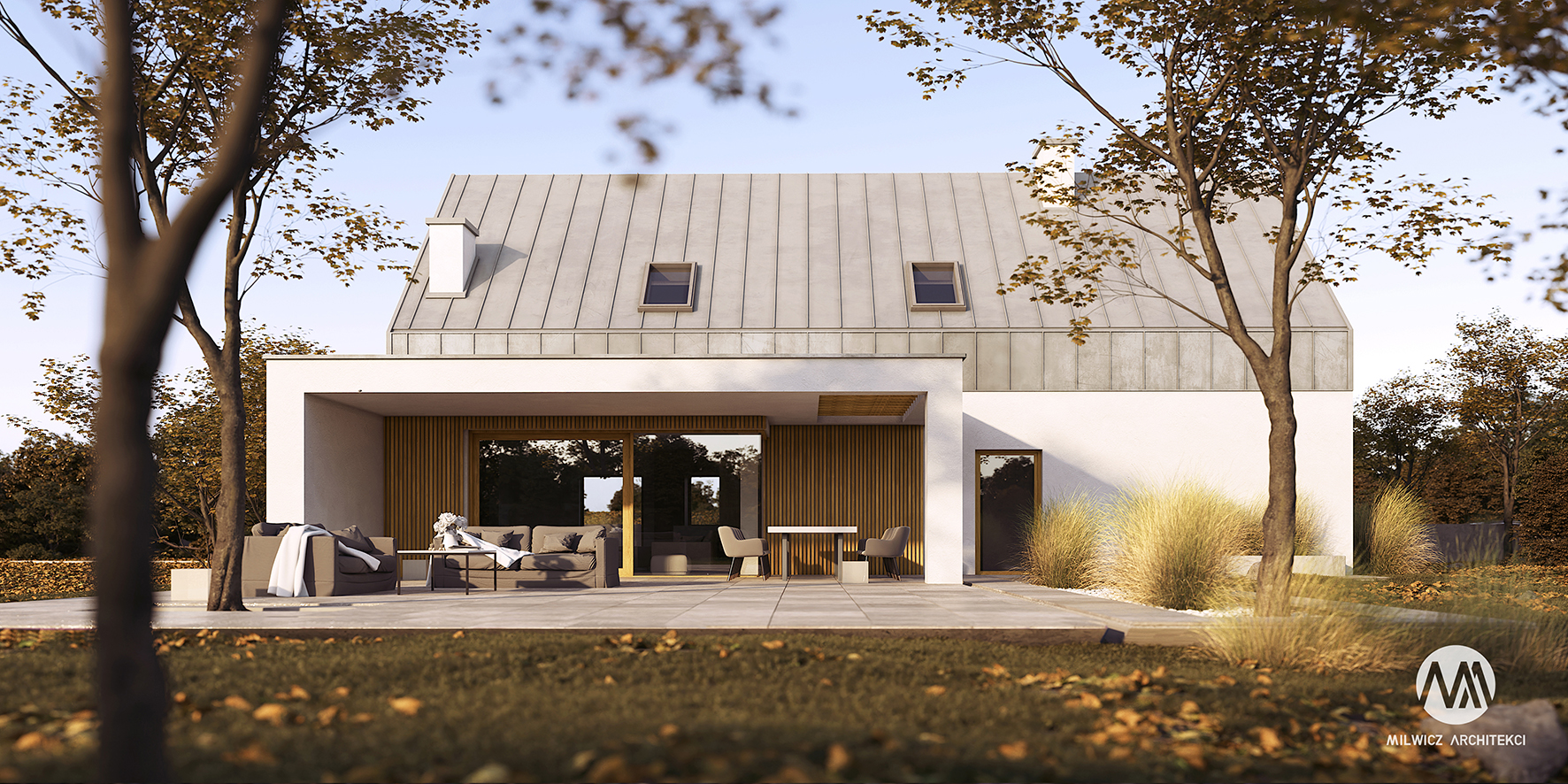 ELEWACJA Tynk mineralny, deski thermodrewno, blacha na rąbek